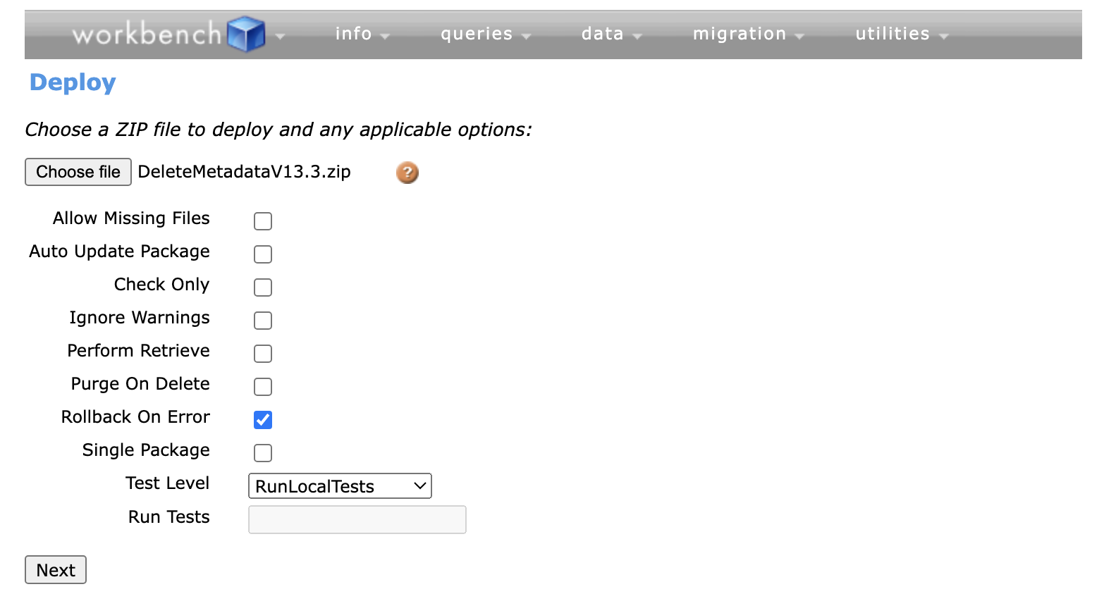 Test Level - Click ‘Next’