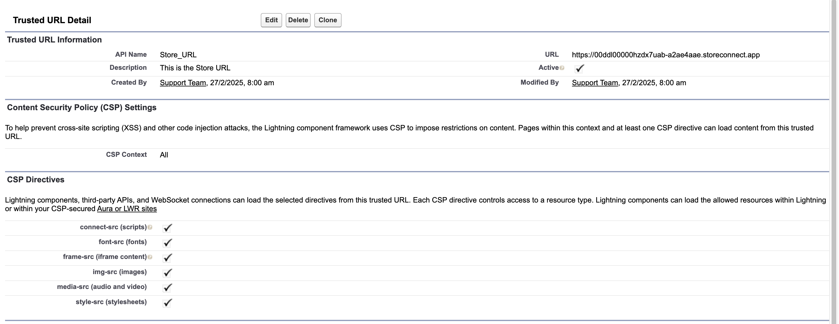 For more details, refer to Salesforce’s CSP Trusted Sites documentation.